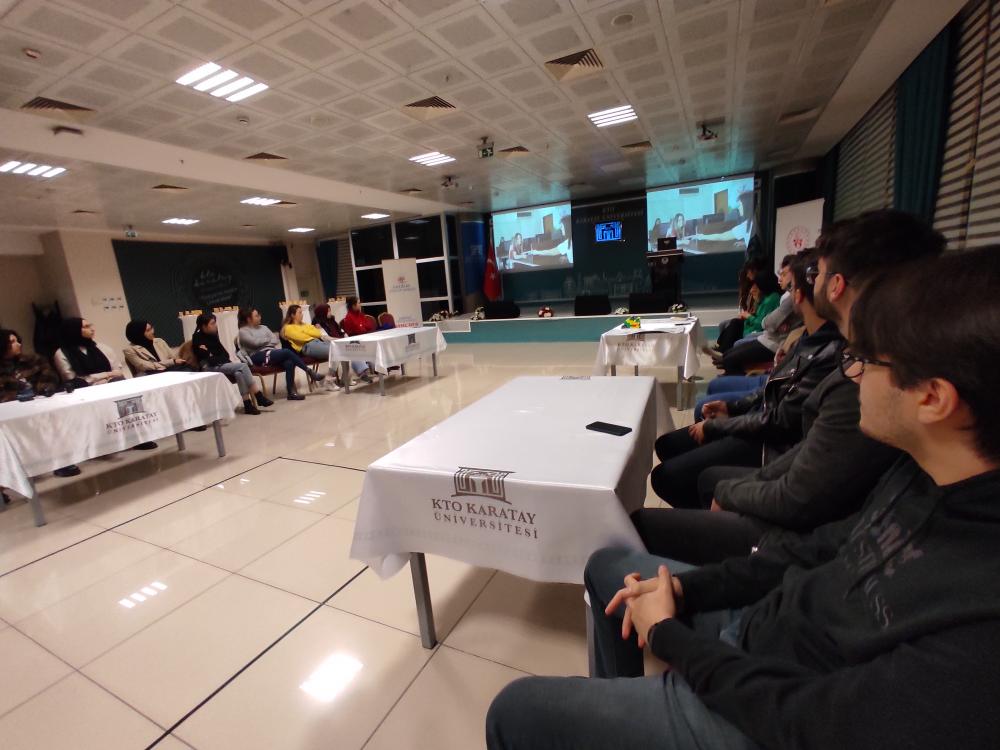 Konya Ticaret Odası Eğitim ve Sağlık Vakfı Yurt ve Konukevlerinde kalan öğrencileri için, Gençlik ve Spor Bakanlığı'nın Vizyon Kulübü Eğitimleri' nden " LİDERLİK VE TAKIM ÇALIŞMASI EĞİTİMİ" konulu eğitimi 23 Kasım 2022 Çarşamba günü saat 19:00 ve 21:30 arasında KTO Karatay Üniversitesi Sosyal Tesis 2. Kat Konferans Salonunda gerçekleştirdi.